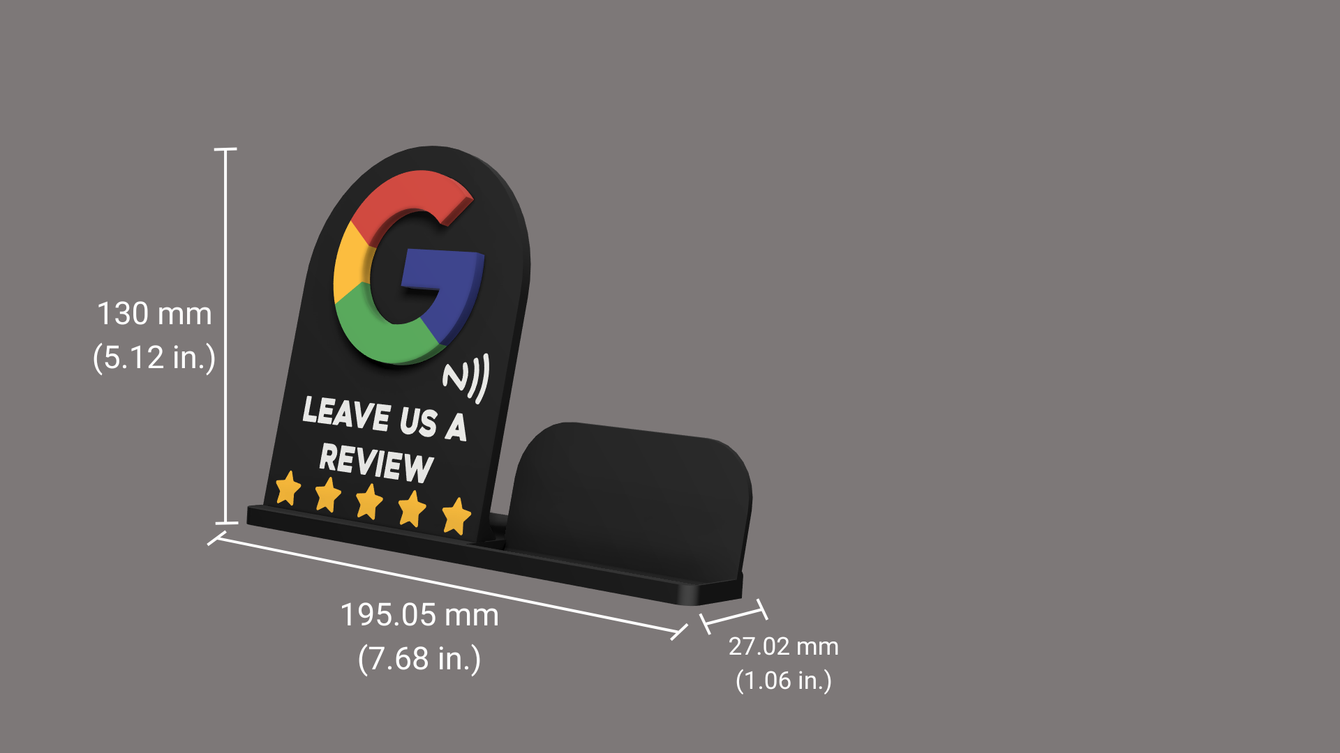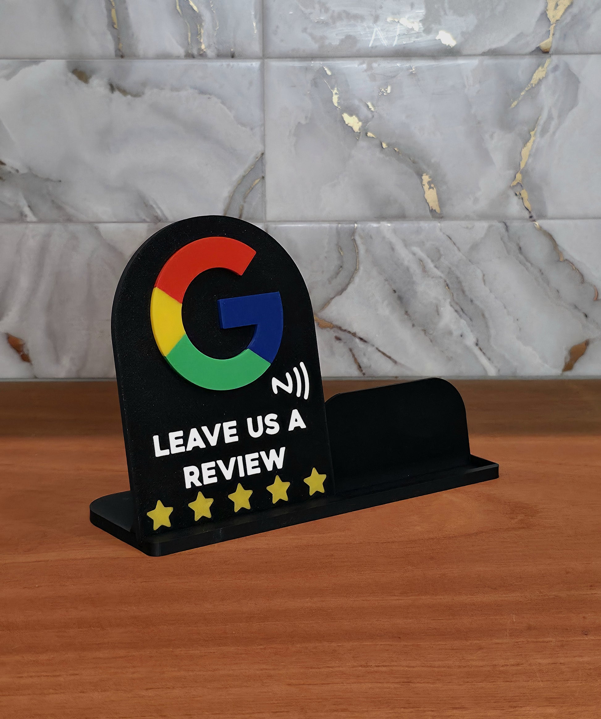 With built-in NFC technology, customers simply tap their smartphone on the stand to be instantly directed to your Google review page—no QR codes, no hassle, just one seamless tap.